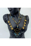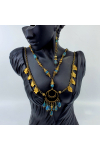Earrings measure 3.30" necklace measures 28" with toggle clasp closure. Wt. 60 grams.