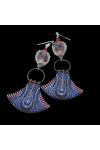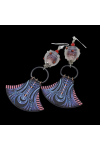 Artisan clay art hand painted charms, paired with artisan lampwork, topped with Swarovski bicones and sterling silver ear hooks. Measure 3.62"