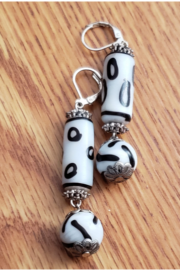 Artisan Polymer clay beauties topped with large vintage Swarovski rondelle, oxidized sterling silver ear hooks. MEASURE 3.31"