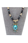 Gorgeous onyx gemstone rondelle paired with fresh water pearls, Czech glass lobster clasp closure necklace 20" Glamorous pave crystal owl 2..5"