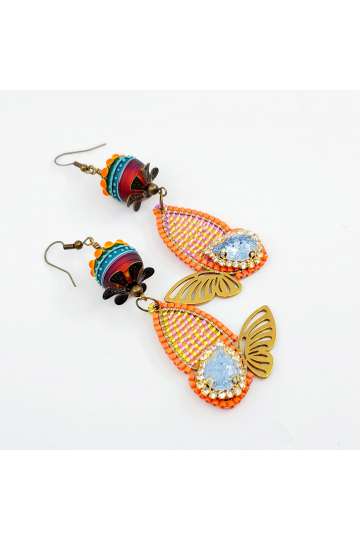 Sterling Silver Lampwork work earrings. The sheer beauty of artisan lampwork Lentils, add so much life to these fun floral earrings. They measure at 1 3/4" from sterling silver round french hook ear wires.